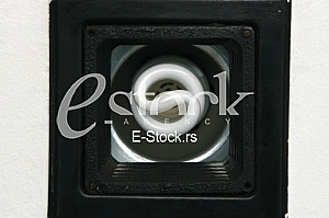 Energy saving fluorescent light bulb in the chandelier on the ceiling