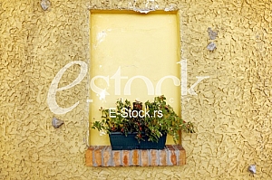 Flower in a pot put in a niche on a wall