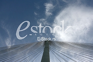 Part of construction of new Belgrade biggest bridge with one tower ( pilon) in the world / river Sava, Serbia / under construction / one pylon /
