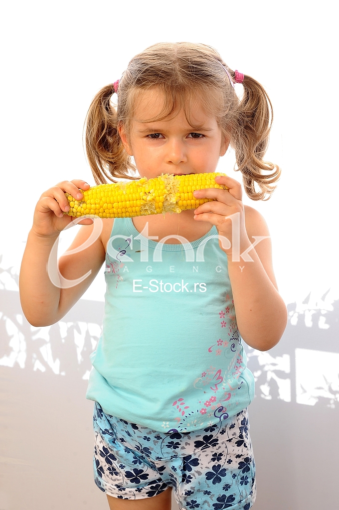 - Description: little girl eats corn