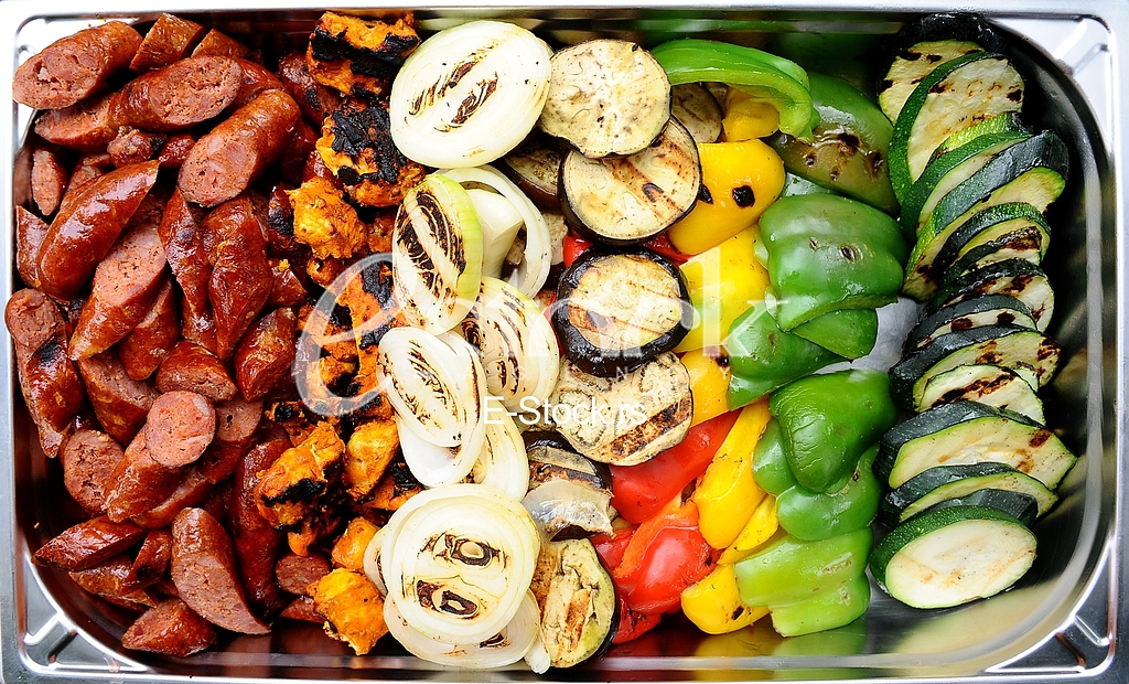 - Description: grilled vegetables and sausages