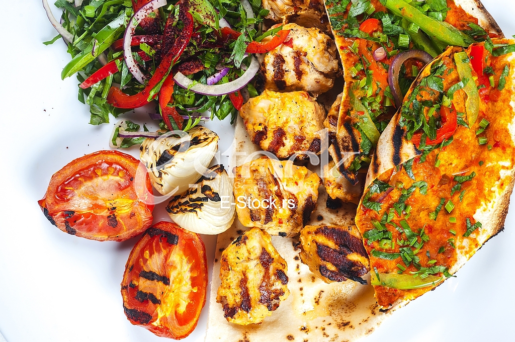 - Keywords: asian, barbecue, bbq, blue, chicken, closeup, cooked, cooking, cuisine, delicious, diet, dinner, gourmet, green, grill, grilled, healthy, hot, kebab, lebanese, lebanon, meal, meat, mediterranean, onion, oriental, plate, platter, poultry, protein, red, shish, taouk, tasty, tomato, traditional, vegetables, white, wooden