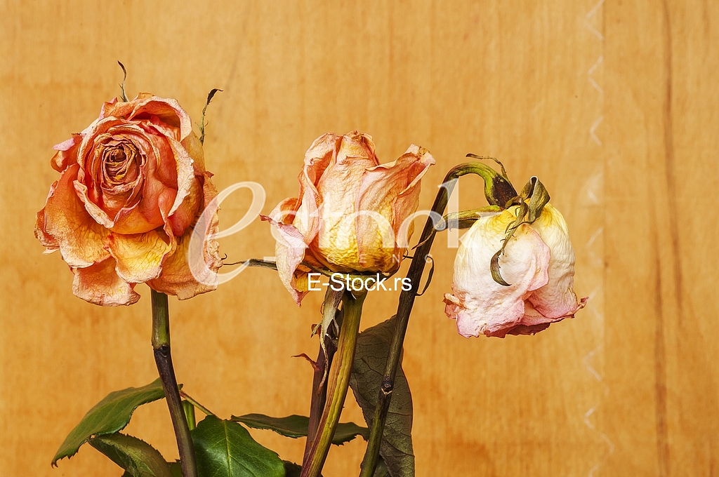 - Description: Dry roses and petals background isolated on white