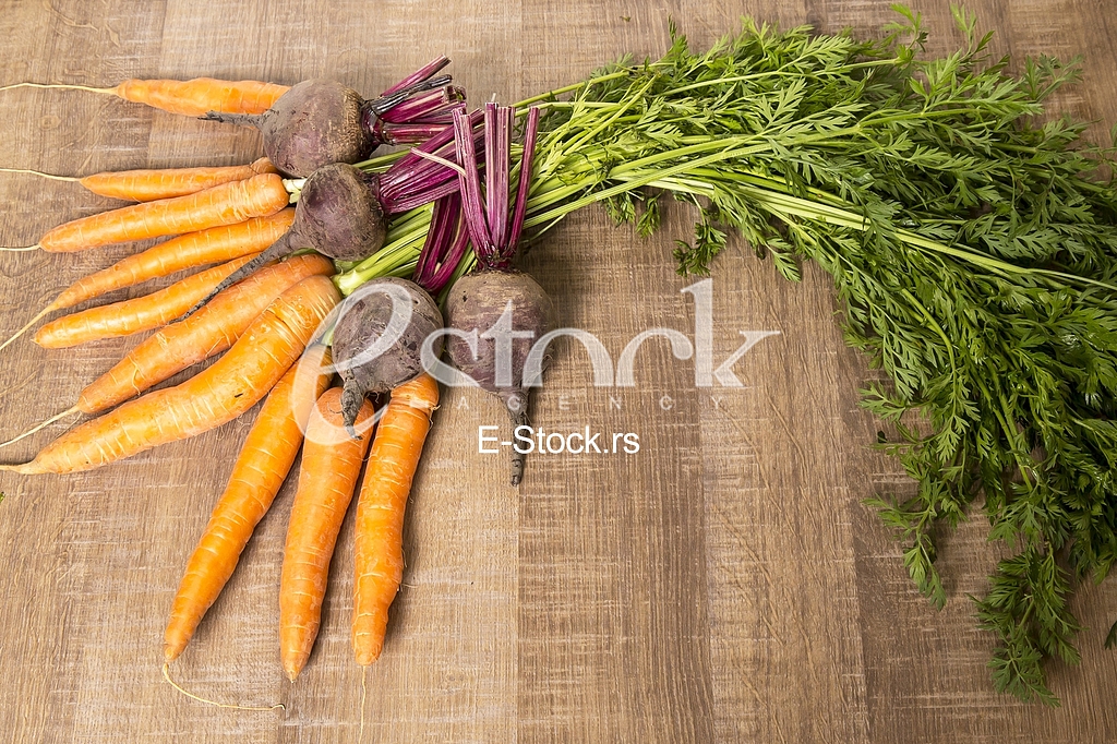 - Description: Fresh vegetables carrots, beetroots on wooden background. Harvest still life