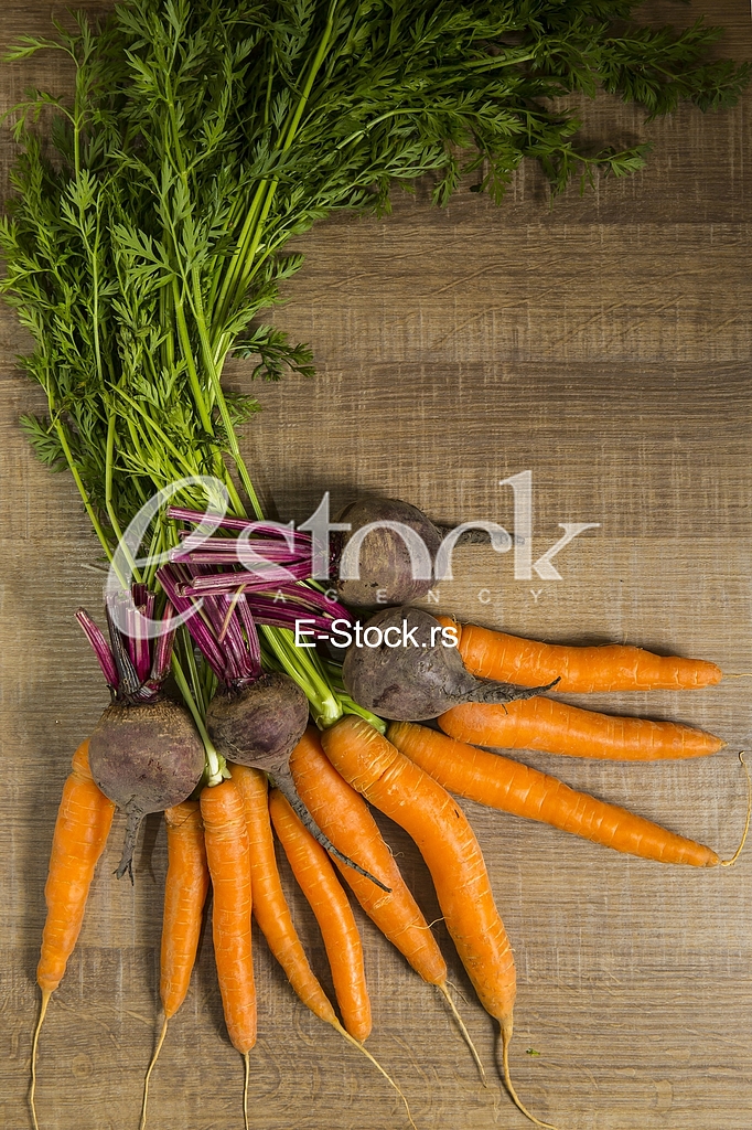- Description: Fresh vegetables carrots, beetroots on wooden background. Harvest still life