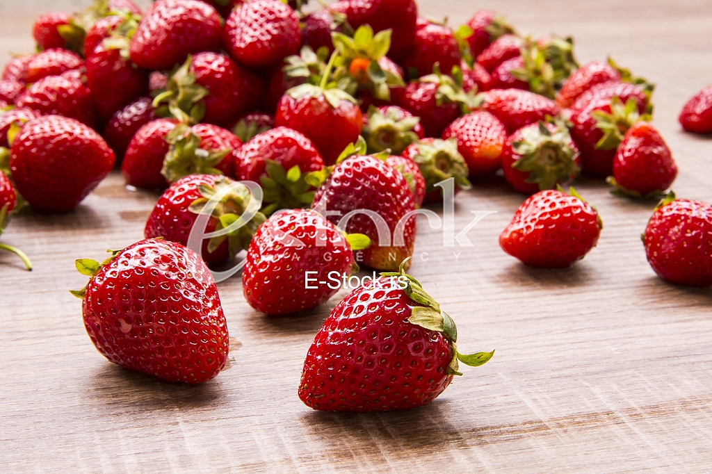 - Description: strawberries on garden's table