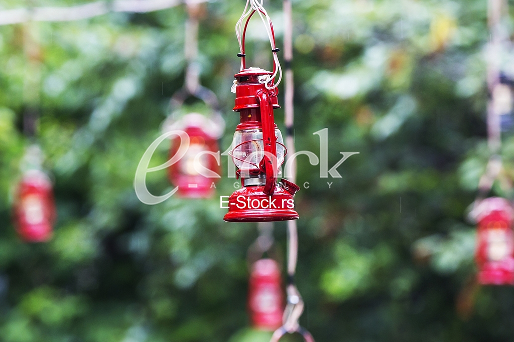 - Description: vintage kerosene oil lantern lamp hanging on the wire