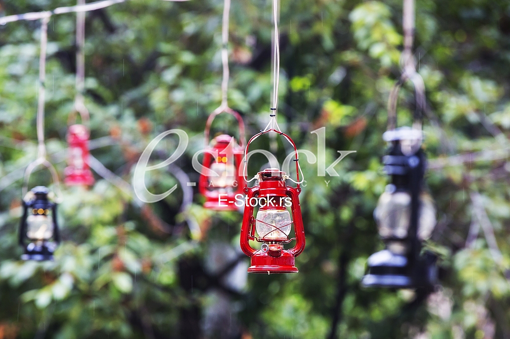 - Description: vintage kerosene oil lantern lamp hanging on the wire
