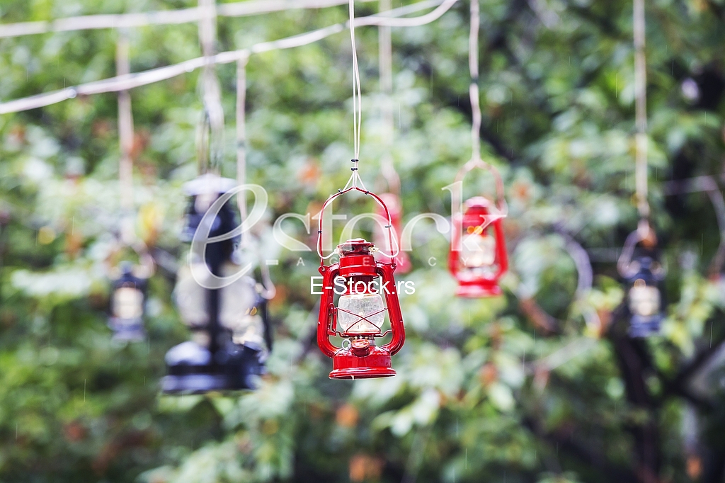 - Description: vintage kerosene oil lantern lamp hanging on the wire