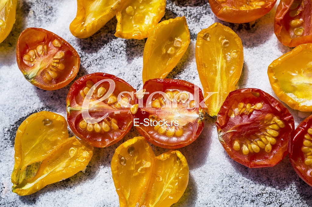 - Description: Yellow and red tomatoes dried in the sun