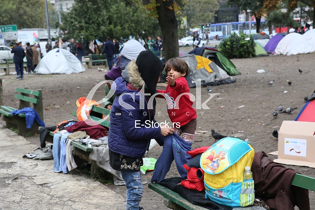 - Description: SERBIA, BELGRADE - September 01,2015: Park at the station migrants from Syria have turned into a small city. Some have even set up tents and in which they reside, while most sleep under the open sky.
