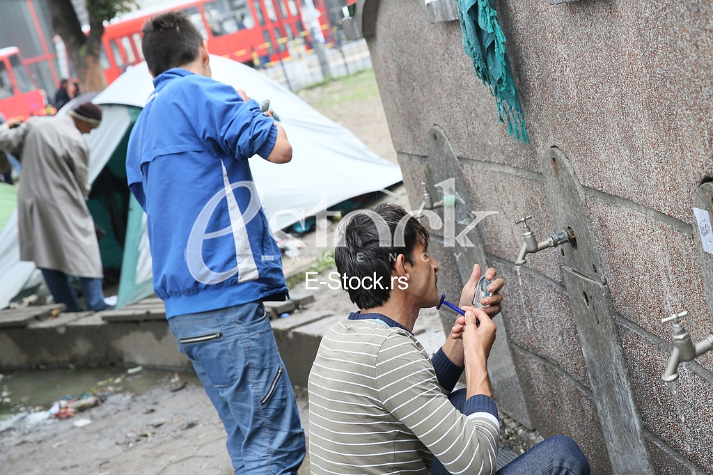 - Description: SERBIA, BELGRADE - September 01,2015: Park at the station migrants from Syria have turned into a small city. Some have even set up tents and in which they reside, while most sleep under the open sky.