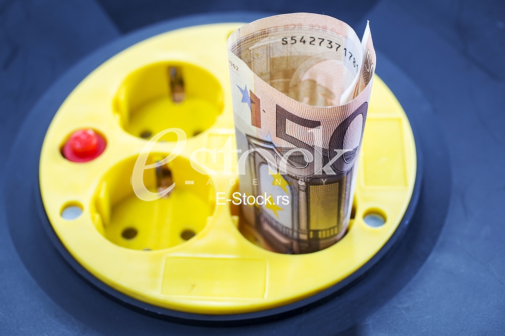 - Description: Connection plug with Euro money as symbol for expensive electricity