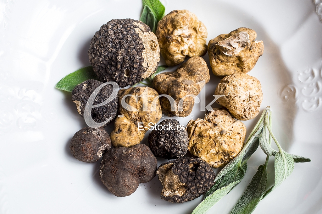 - Description: Group of delicacy white and black truffles