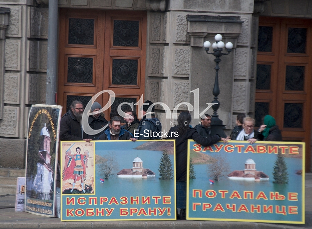 - Description: Belgrade.27.03.2016. Protest about flooding monastery from 15th century. photo e-stock, Milutin Markovic