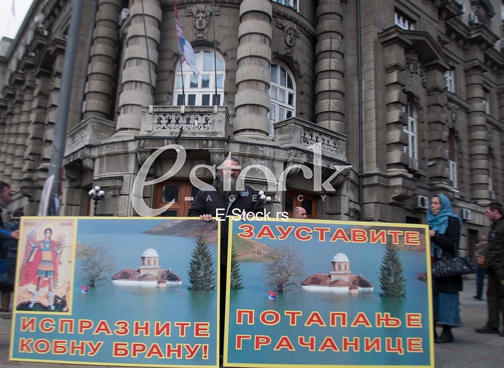 - Description: Belgrade.27.03.2016. Protest about flooding monastery from 15th century. photo e-stock, Milutin Markovic
