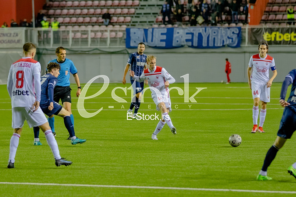 - Description: BEOGRAD, SRBIJA - 31. OKTOBAR: Vezni fudbaler Vozdovca Justas Lasickas #14 (centar) upucuje pas na mecu 15. kola Ling Long Super lige Srbije izmedju Vozdovca i TSC-a iz Backe Topole na stadionu Vozdovca, 31. oktobra 2021, u Beogradu. (Photo: Dimitrije Vasiljević/E-Stock)