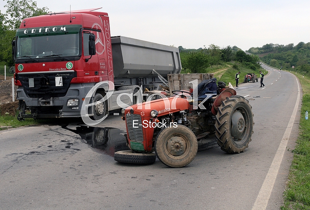 - Description: Smederevo, Serbia, April 28. 2016. Traffic accidents, tractor and truck collision