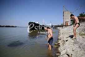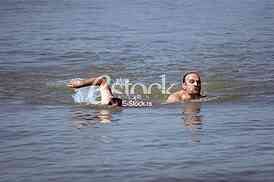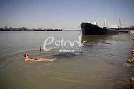 • Description: Smederevo, July 12, 2016. Man swims...